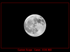 Here's a comparison from Astronomy Tools in Imaging Mode. If you don't know about this web site, you should bookmark it now. The field of view calculator lets you compare different scopes, cameras, barlows, and other items to see how it will effect your shot on solar system objects, Messier objects, and basically anything in the sky. Since it's a web page, you can run it from anywhere you have a network connection. Here's what it shows the FoV would be for my normal AP rig, taking pics of the Moon. This is a 102mm/f7 scope with an ASI2600 camera dedicated astro camera on it and a 0.8x flattener/reducer.
