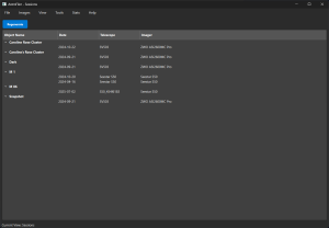 If you View -> Images, you can sort based on object or date and filter based on type (light, dark, etc). Once you select an image, you can double click it to open a FITS viewer. I chose ASTAP, which you have to first configure in Tools -> Configuration.